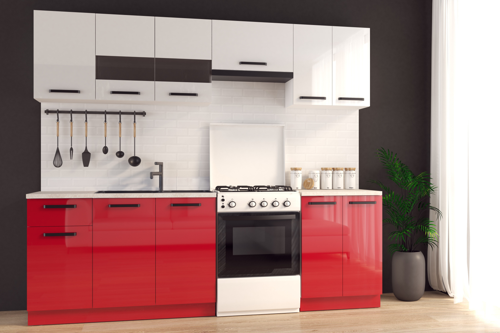 Bucatarie Daria, 240x60x200cm, Alb+Rosu