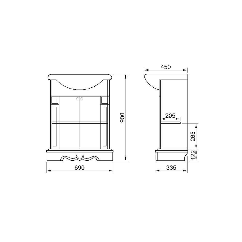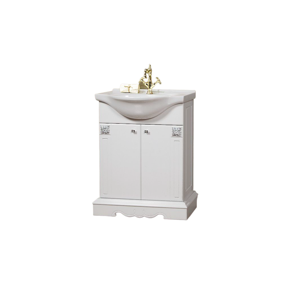 CARACTERISTICI GENERALE Tip produs Masca baie + Lavoar Utilizat pentru Mobilier baie Stil Classic Numar corpuri mobilier/set 3 Numar dulapuri 0 Numar usi 2 Numar rafturi 0 Numar sertare 0 Stare asamblare Neasamblat Finisaj Furniruit + vopsit Culoare Alb/Argint DETALII MATERIAL Tip fronturi MDF Material MDF furniruit 16mm Esenta lemn DIMENSIUNI Lungime 690 cm Latime 450 cm Inaltime 900 cm Grosime 1.6 cm