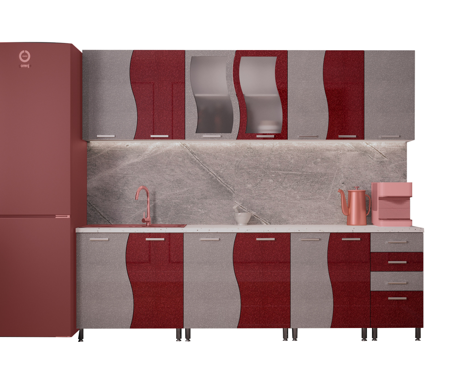 BUCATARIE CIP S MDF ROSU METALIZAT 2,6M