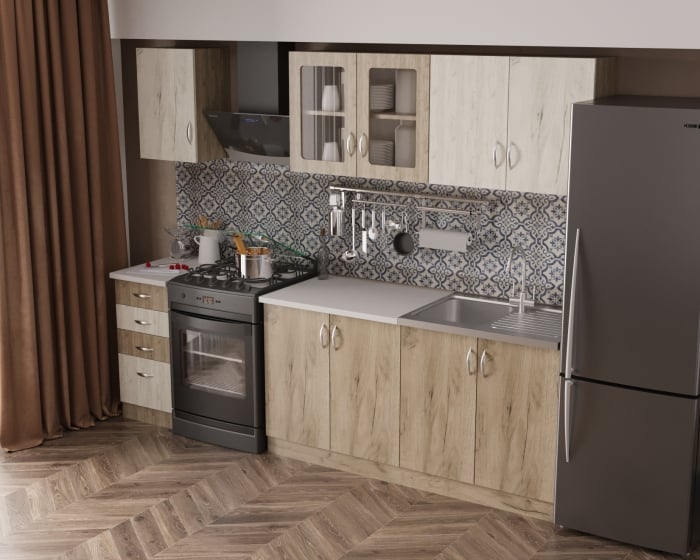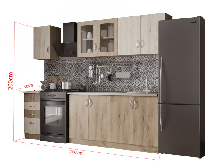 - Dimensiuni set mobila bucatarie (cm): 200 x 60 x 200 cm