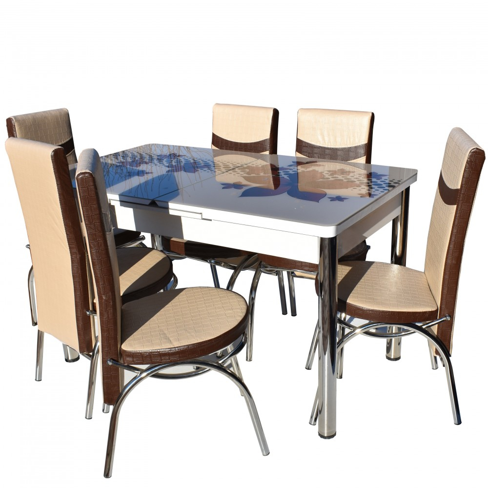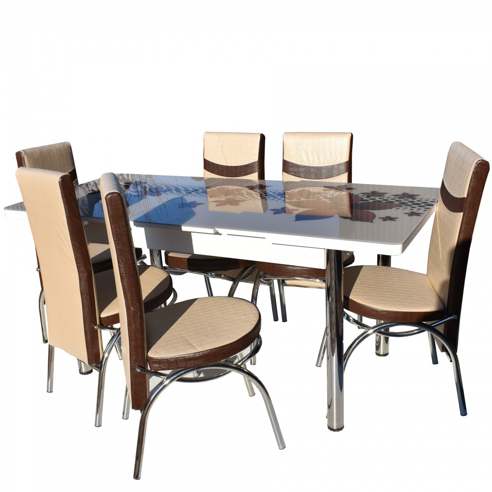 Descriere:* Set masa sticla cu 6 scaune TIP 2-0021