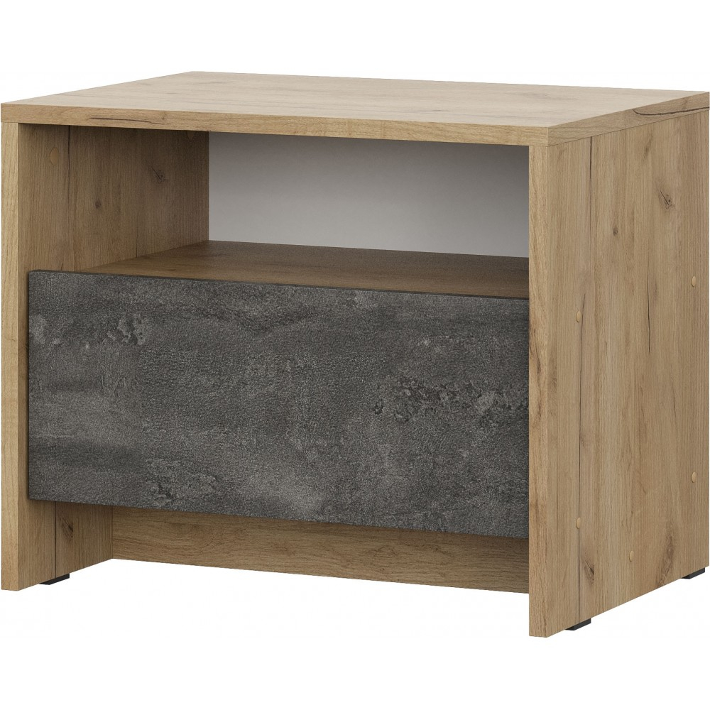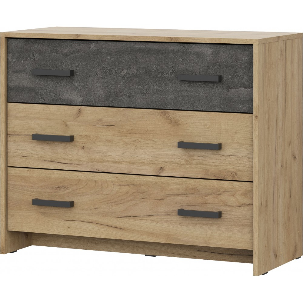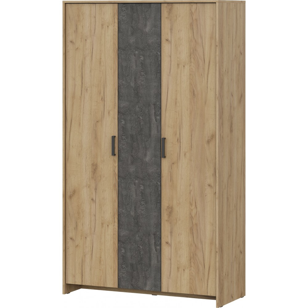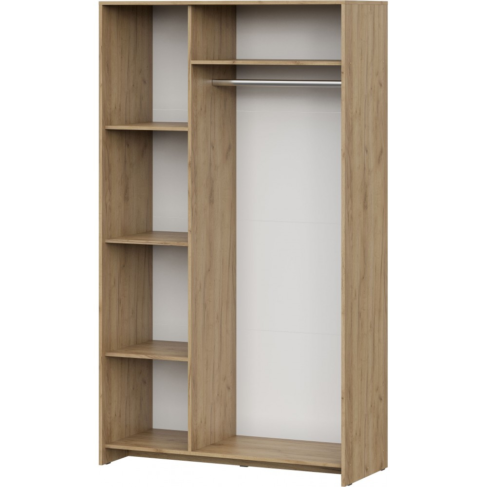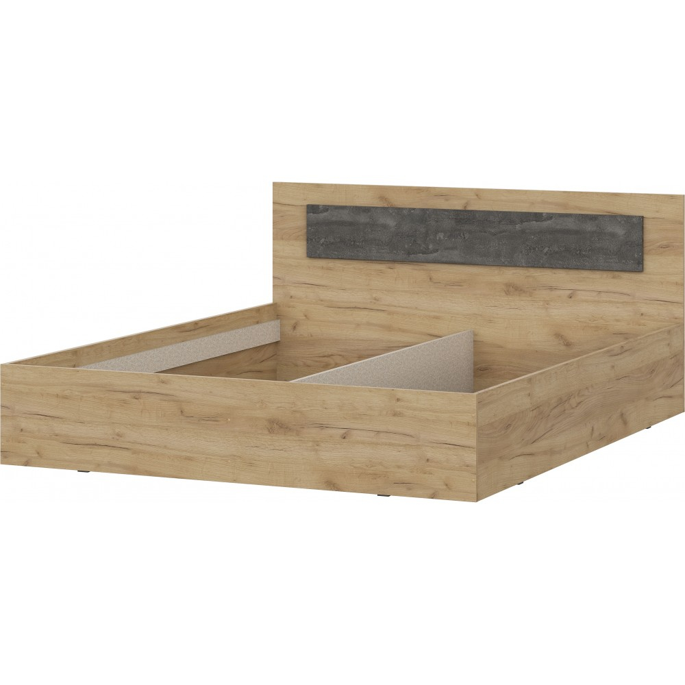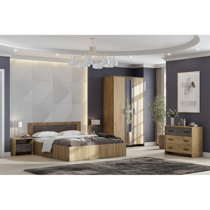 CARACTERISTICI GENERALE Tip produs Set mobila dormitor Utilizat pentru Dormitor Stil Modern Numar corpuri mobilier/set 5 Numar dulapuri 1 Numar usi 3 Numar sertare 5 Stare asamblare Neasamblat Finisaj Melaminat Culoare Stejar Auriu DETALII MATERIAL Tip fronturi Pal melaminat Material Pal melaminat 16mm Esenta lemn Stejar DIMENSIUNI Dimensiuni dulap (cm) 120 x 50 x 209 cm Dimensiuni pat (cm) 163 x 203 x 78 cm Dimensiuni noptiera (cm) 50 x 36 x 41 cm Dimensiuni comoda (cm) 90 x 39 x 72 cm