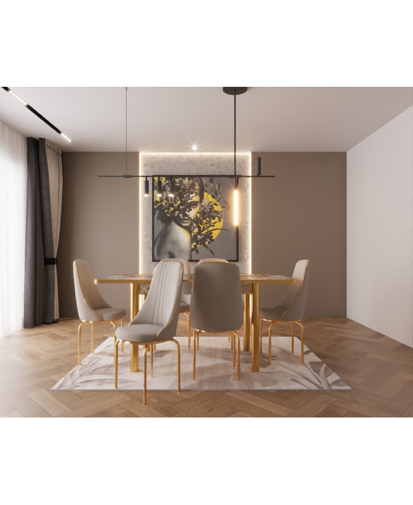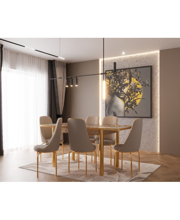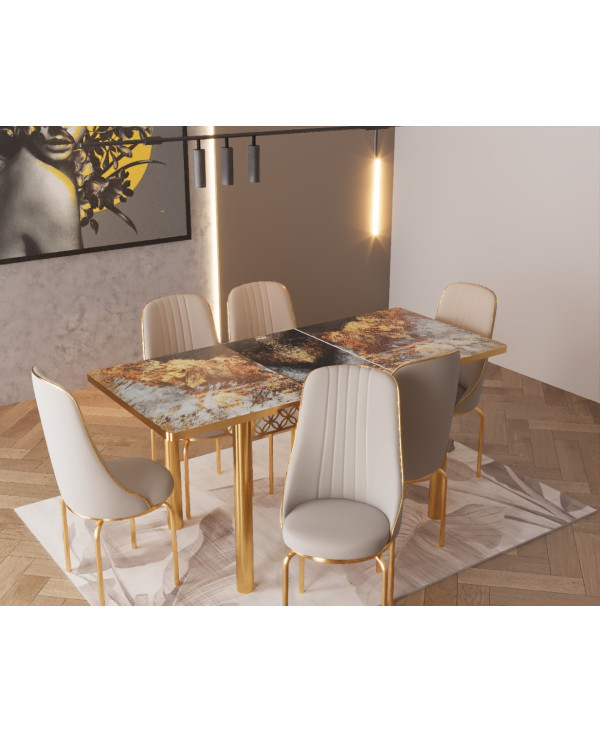 SET MASA 6 SCAUNE ALTIN 3, GRI, BEJ