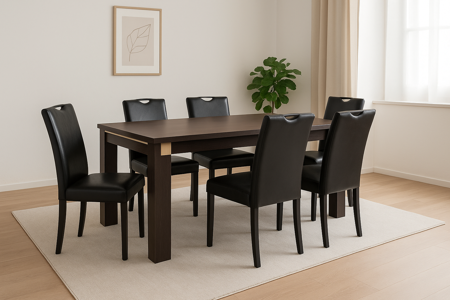 Set masa MARIO cu 6 scaune tapitate RH6002C Negru